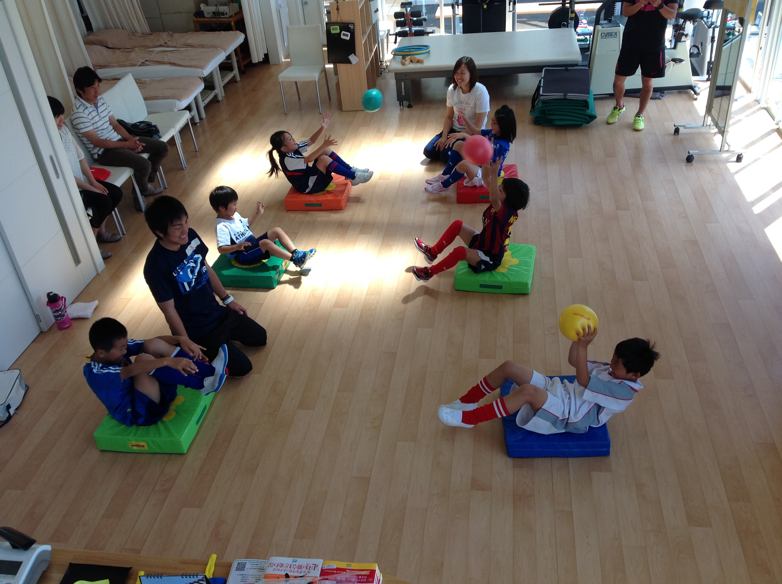 選手たちは、学校の体育や普段の練習ではあまりやらないようなトレーニングに