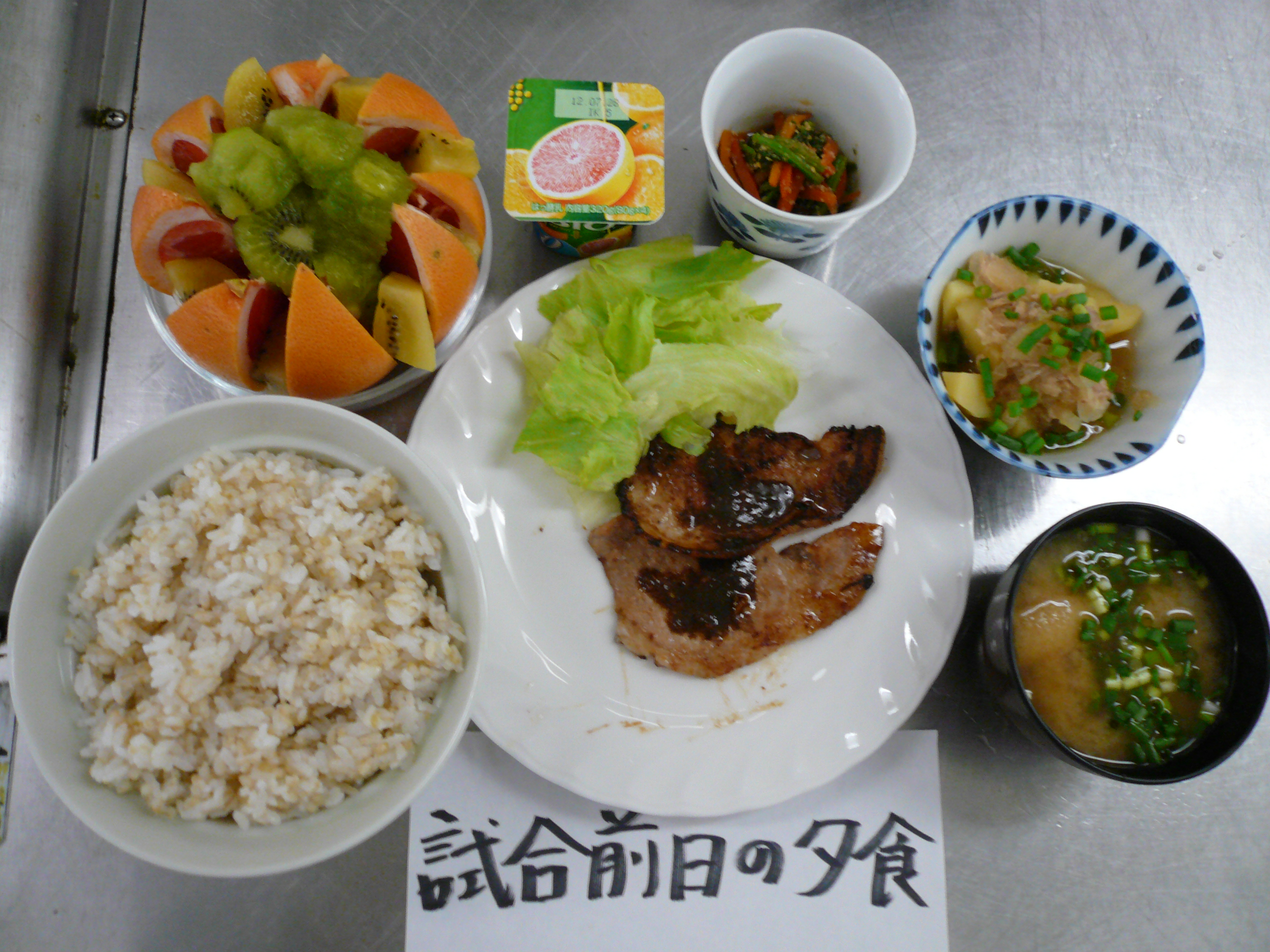 今回も試合前の食事と普段の食事で量や内容を比べてもらうよう、グループ分けしました。