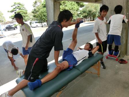 試合前のストレッチやテーピング、ウォーミングアップをトレーナーが行いました。またタイミングをみてドリンクやサプリメントを提供しました。ハーフタイムには熱を持った体を冷やすためにアイスベストも使用しました。