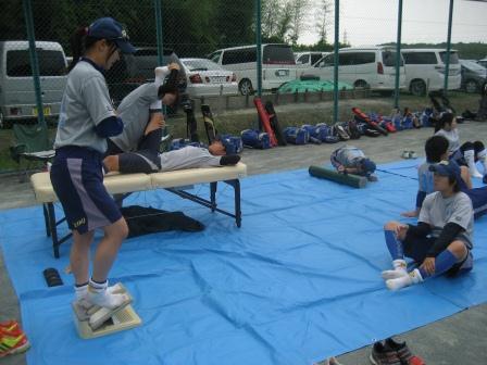 練習前のストレッチやウォーミングアップや宿舎でのケアなど選手のコン